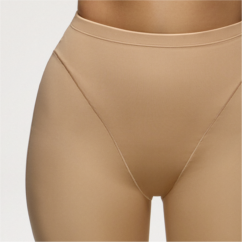 Your best hips and butt. Designed in our signature SKIMS Body fabric, these mid-rise shorts feature mid-level compression that smooths and shapes your figure. With embedded foam pads at the butt and hips, this thigh-length solution lifts your butt, adds up to two inches of butt volume, and creates a fuller hip shape. Includes a closed gusset and raw cut leg opening. Fits true to size.