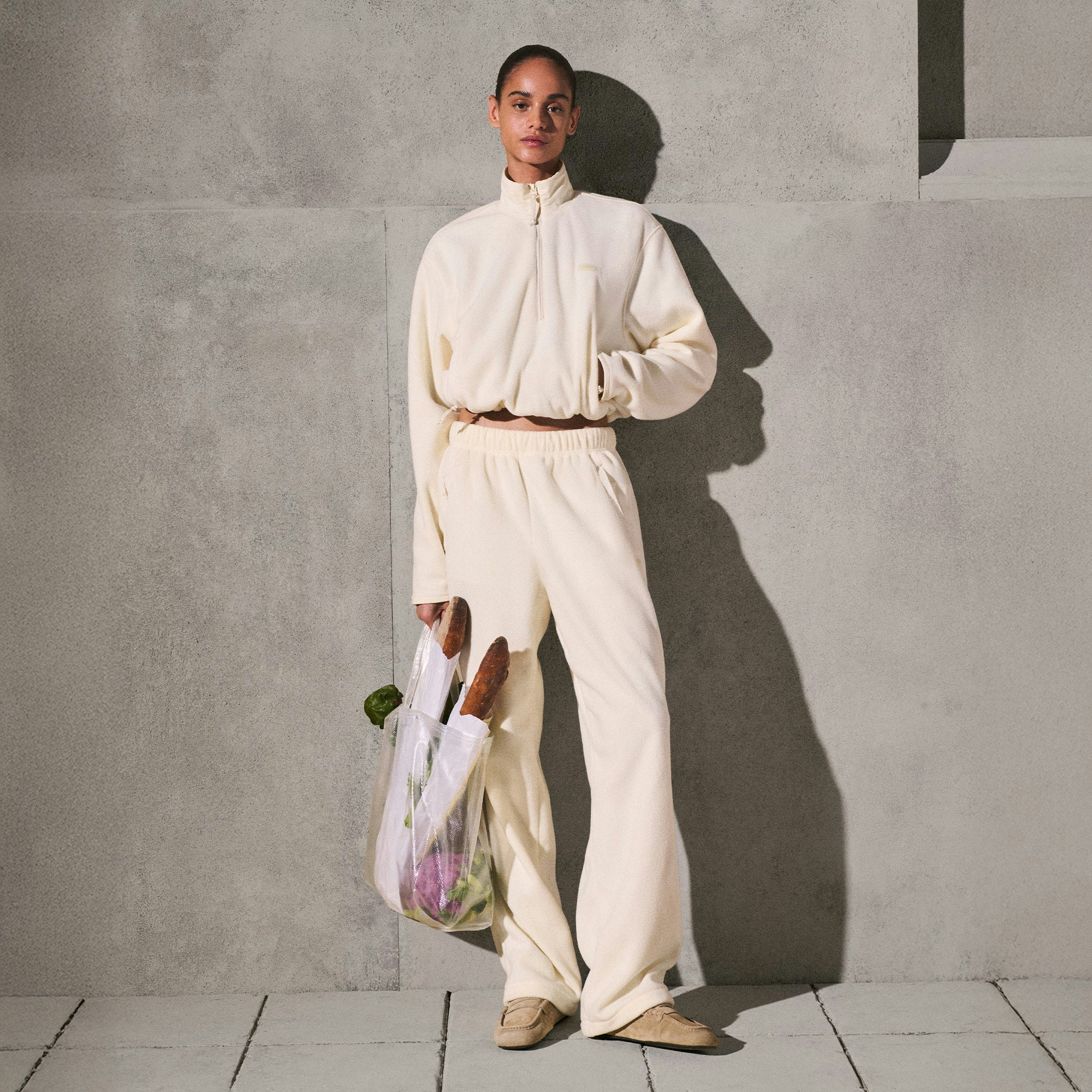 Velvety soft feelUnmatched warmthCooler days call for this plush half-zip. Designed in our mid-weight polar fleece with contrast detailing, this relaxed pullover features a loose mock neck and adjustable bungee cord at the hem. Complete with zipper pockets and a SKIMS logo on the side chest. Fits true to size.