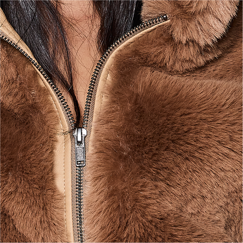 Statement PiecesLuxe DetailsMake a soft, cozy statement. This faux fur zip-up jacket combines a smooth, satin lining with chic faux leather trim details. Front welt pockets keep you warm while ribbed details at the cuff and hem add an elevated finish. Fits true to size.