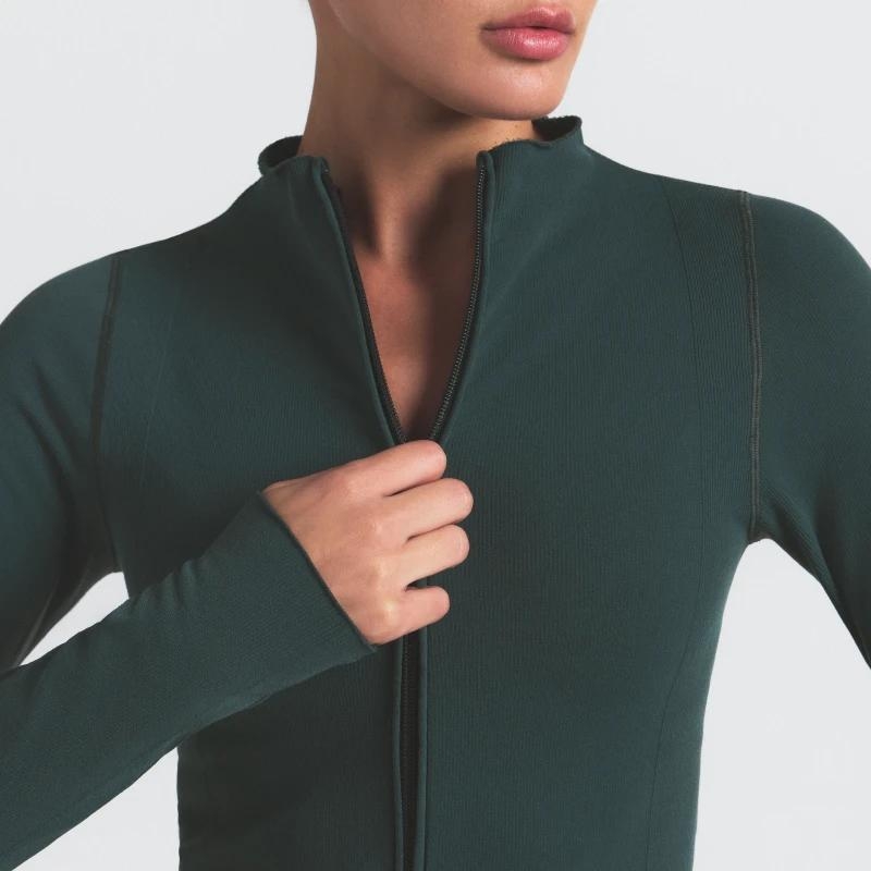 YogaPilatesBarreWith a snug fit and soft, cotton-like feel, this zip-front jacket features a mock neck and moisture-wicking stretch for easy layering from studio to street.